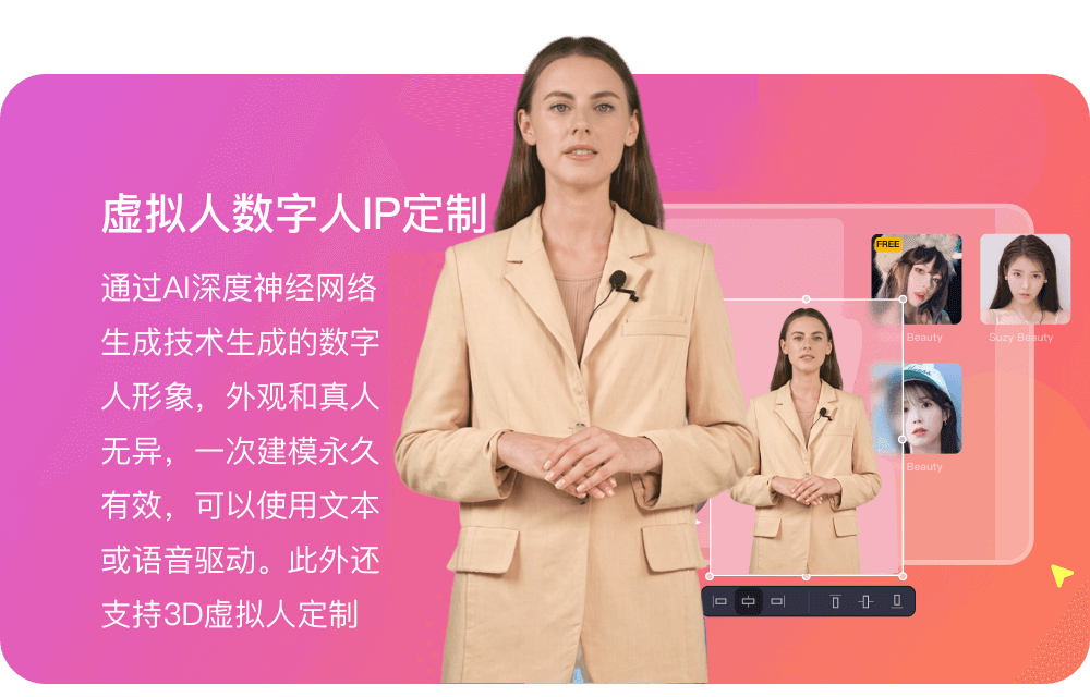 自定义形象,超级唇形匹配模型库,不用针对专人训练。